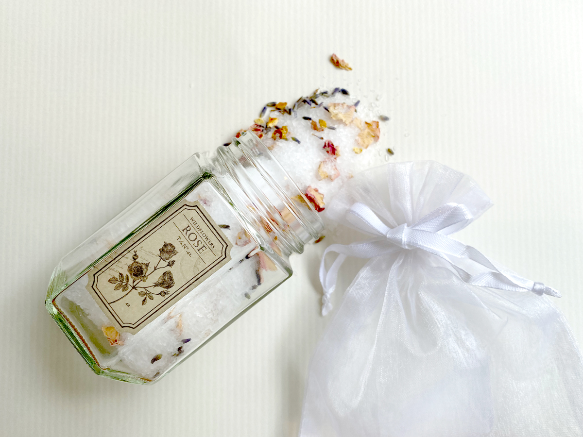 睡眠タイプチェックで導かれたあなたに合った精油を用いて、エプソムソルトを使ったバスソルトを作ってお持ち帰りいただけます。ハーブも入れて素敵なバスソルトでリラックスしたバスタイムをお過ごしください。