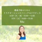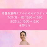 2025年6月7日 / 最終更新日時 : 2025年8月29日 せんだ 終了イベント 8/23(土)骨盤底筋群ケアのためのピラティスはじめての方もOKのイベントレッスン ~はじめよう!実感できる!骨盤底筋群の鍛え方〜 【女性限定レッスン】 アクティブ度:★★☆ 身体を支える要の筋肉でありながら、鍛える実感が持ちにくい筋肉。鍛えた実感が持てるやり方を知って身体のケアをしましょう!! &#x […]