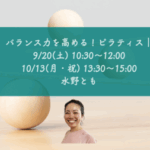 2025年10月10日 / 最終更新日時 : 2025年10月13日 せんだ 終了イベント 10/13(月•祝)バランス力UP!ピラティス体幹強化で心身を安定させるはじめての方もOKのイベントレッスン ~歩く基本は片足立ち~ 【女性限定レッスン】 アクティブ度:★★☆ 日常生活を安心して快適に過ごすために必要不可欠な「バランス力」。 その力を高めることで、身体の安定感が増し、動作のひとつひとつに自信が持てるようになりま […]